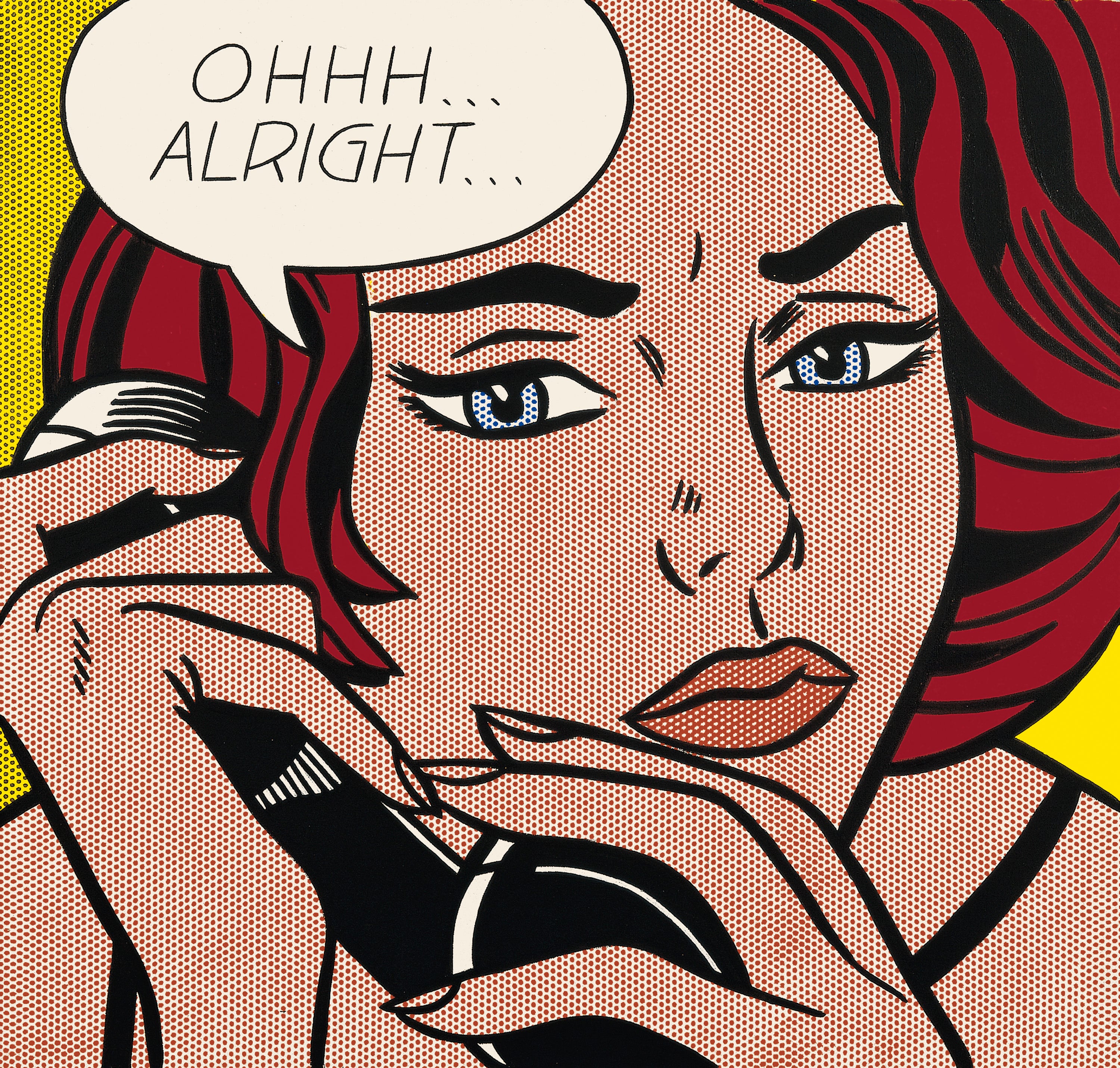 Above the american plane, the words of the pilot appear in a yellow bubble:. .. A key figure in the pop art movement and beyond, roy lichtenstein grounded his profoundly inventive career in imitation—beginning by borrowing images from comic books and advertisements in the early 1960s, and eventually encompassing those of everyday objects, artistic styles, and art history itself.